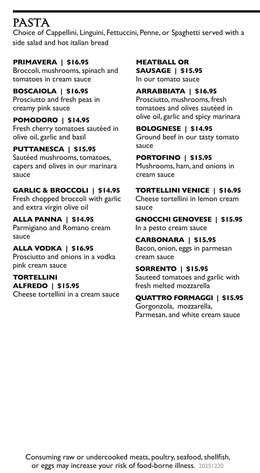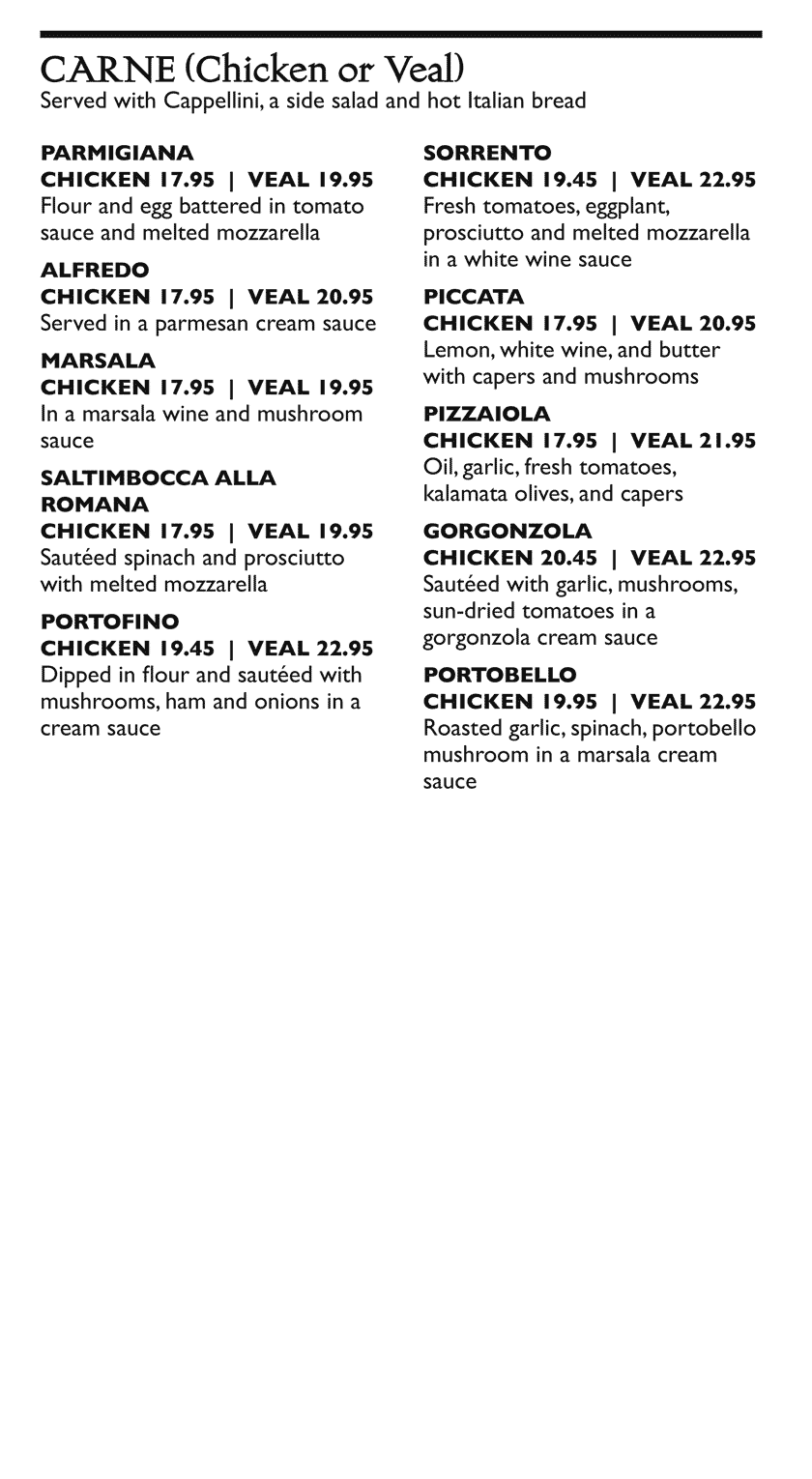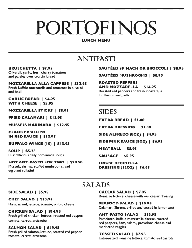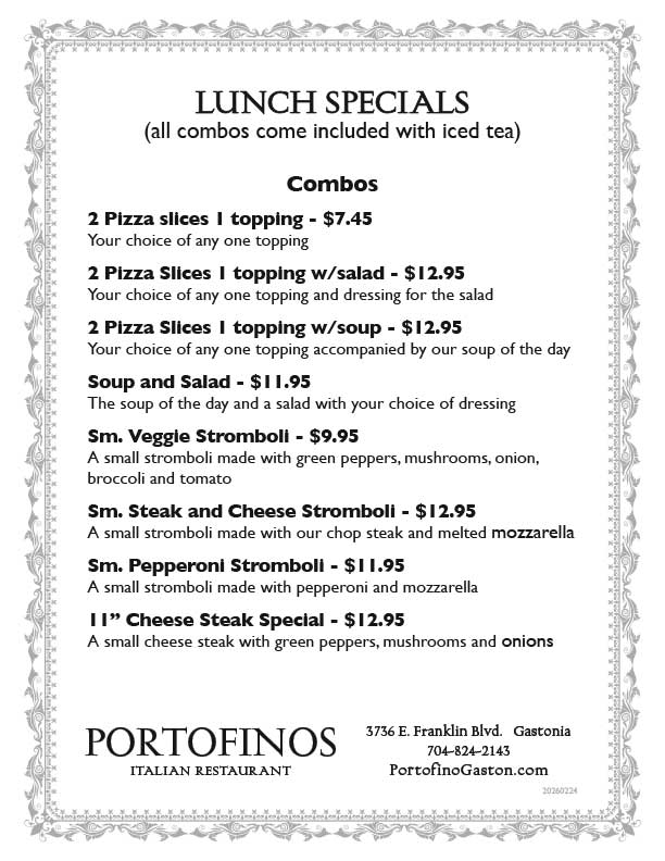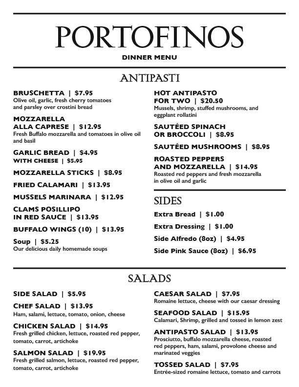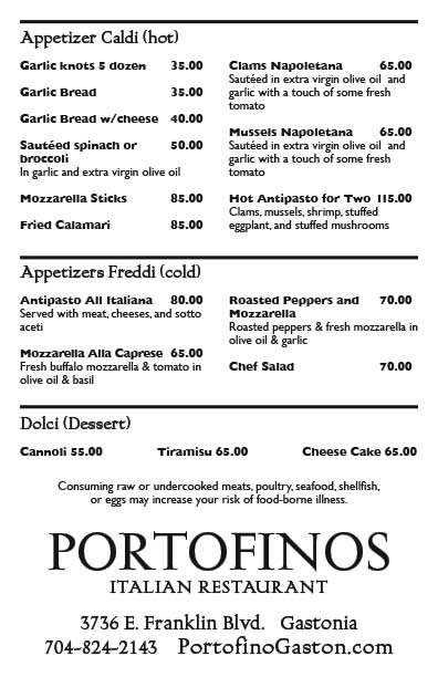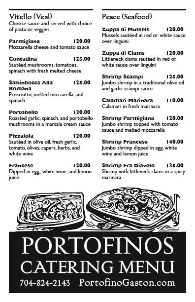 Opening the doors in 1999, Portofino’s has proudly provided the Gaston area with high quality Italian cuisine. Striving to create a restaurant with an air of simplicity and an impeccable menu.